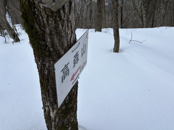 CLを先頭に予定通りの時刻でスタート。ところどころ土が見えている。途中先頭を交代し、あずまやまで進む。同じ青森市内とは思えない程の雪の少なさだ。あずまやで小休止した後、順調に進む。このあたりまでは林の中なので風も穏やかだったが、だんだん海からの風が冷たく感じるようになる。木々が強風でゴーゴーとざわめき海風が身にしみる。240mピークは休憩なしで進む。まもなくほたる湖からの分岐の標識4番で小休止。CLより計画では山頂11時着の予定、着かない場合はその時点で引き返すとの指示が出る。時計を見たら10時50分、とても10分では山頂につかない。山頂を見ると黒い雲に覆われている。こんな状態で登ったとしても山頂には1分もいられないかも、仕方がないか。
